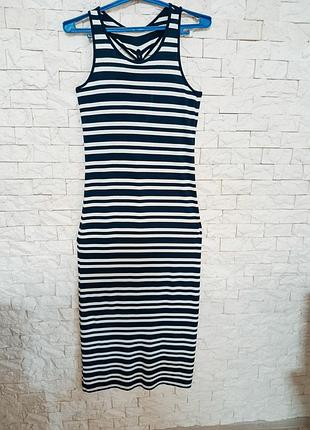 Літня сукня в смужку. Приємна до тіла тканина гарно сідає по фігурі. Дуже красиво і оригінально оформлена спина. Заміри в не розтягнутому вигляді: П.О.Г-43 П.О.Т.-40 П.О.С.-48 Довжина 130см Колір білий і темно синій Доставка: Укрпошта, Нова пошта Оплата: Наложний платіж (Укрпошта, Нова пошта) Банківський переказ на картку