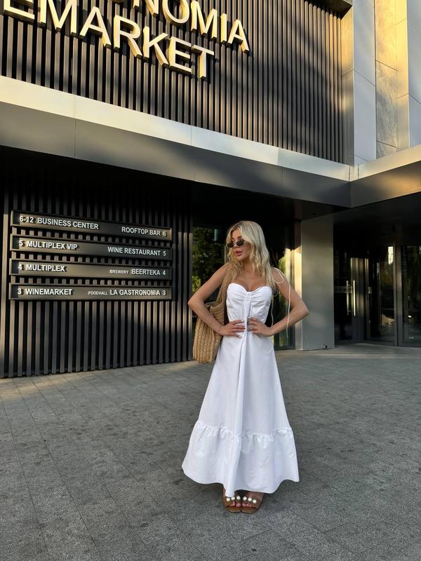 Та сама неперевершена легка сукня для твоїх літніх образів. Довжина максі. Йде на бретелях, на спинці змійка. Тканина не парить та не світиться. Розмір: XS-S Колір: білий Тканина - софт