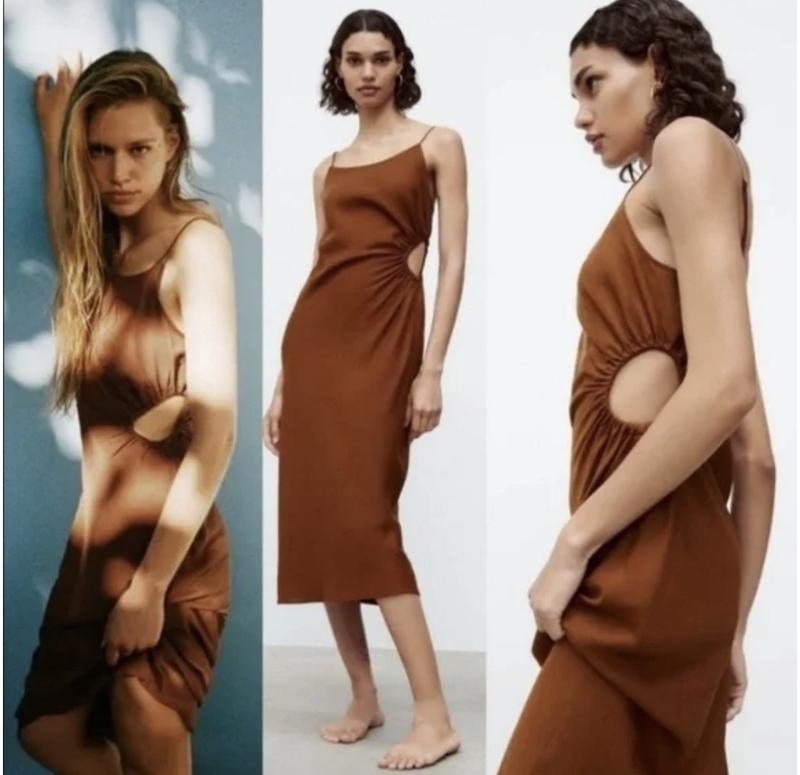 Ідеальний карамельний сарафан міді від ZARА з невеликим вирізом збоку 40% льон 60% віскоза Розмір Л Довж.без бриьель 110+ брителі регулюються пог51 NOT ~44 ПОБ59