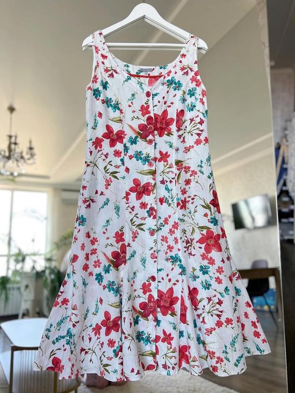 Дуже гарна яскрава сукня-сарафан від Per Una,100% льон,розмір М,пог 47 см,пот 44 см,стегна вільно,довжина 102 см.Нова,без паперової бірки.