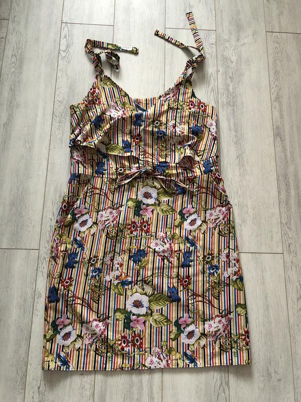 Сарафан на брительках, які можна регулювати, на поясі є шнурочок яким можна регулювати талію.
