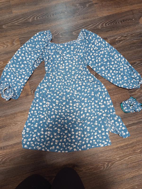 Легенька сукня з гарними рукавами. Довжина від пояса 50 см. Обхват талії до 80, Обхват грудей до 100. Спинка на резинці- добре тягнеться.В комплекті є резинка для волосся