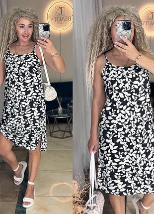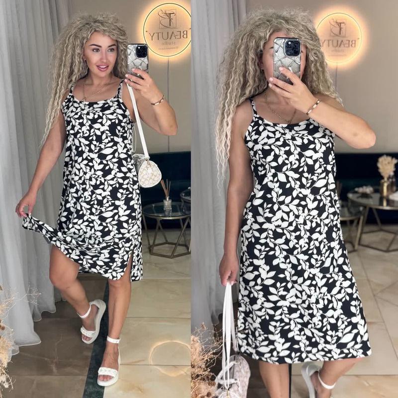 П Артикул: 420-EHES5958 Сукня Тканина: софт Колір: ментол, оранж, фрез, голубий, чорний в білі листочки Розмір: 42-44, 46-48, 50-52 Ця сукня стане ідеальним доповненням вашого гардеробу. Виготовлена з м'якого софту, вона забезпечує комфорт протягом усього дня. Стильні розрізи по боках додають елегантності, а різноманітність кольорів дозволяє вибрати варіант на будь-який смак.