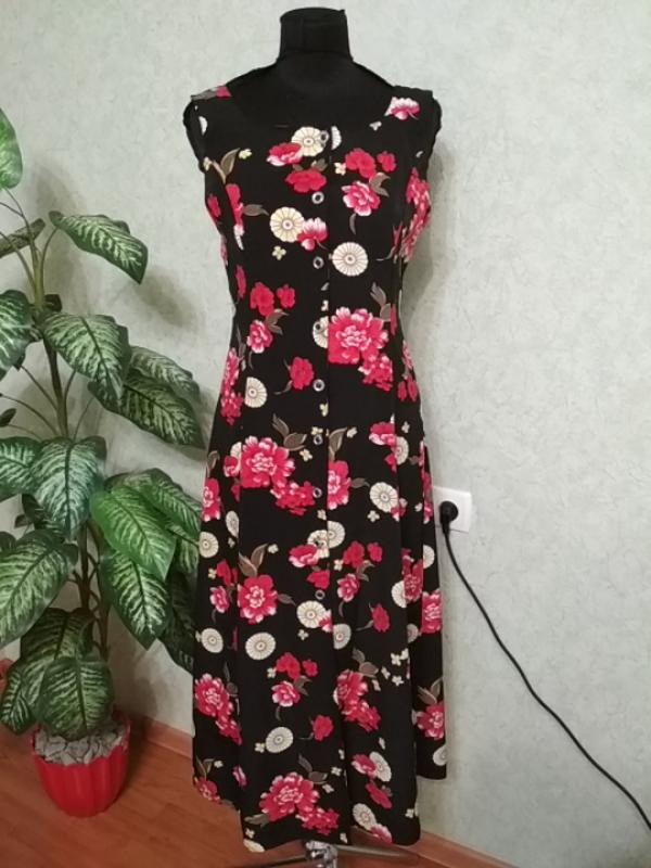 Сарафан дуже красивий і зручний. Немає складу тканини. Тканина дуже класна не линяє і немнется. Ді-125, плечі-36, ПОГ-46.