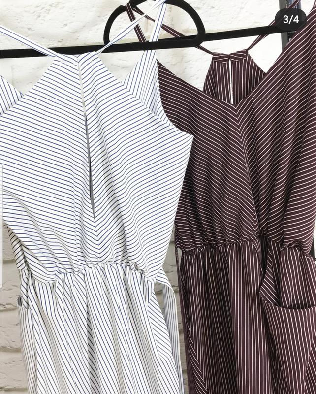 на бретелях,они регулируются , идет на запах, сбоку кармашек,талия на резинке, лёгкое, свободное.сзади на спине легкий вырез. в коричневом цвете.пояс в комплекте