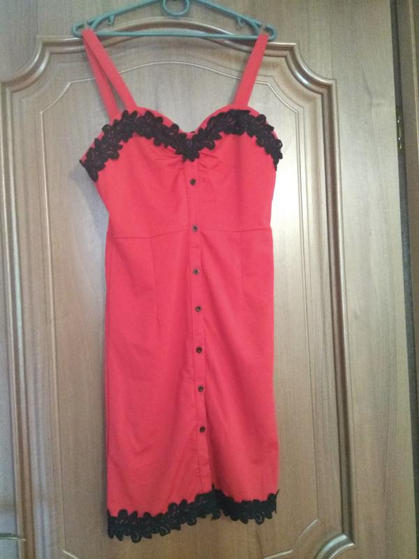 Сарафан, супер качество,оболдено сидит,подкресливая вашу фигуру. Цвет красный,чёрное кружево, размер 44. В такой же модели есть и другие цвета и размеры. Черный с белым кружевом, розовый с белым кружевом, телесный цвет с белым кружевом.