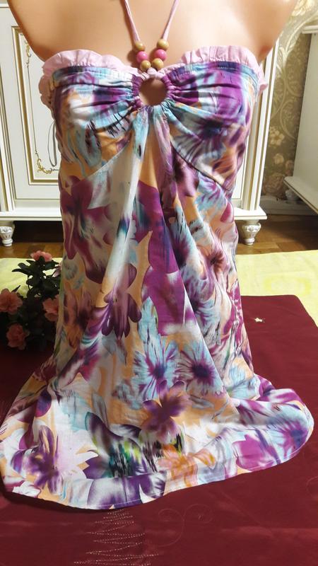 Милий сарафанчик з відкритою спинкою Легкий,тонкий, відмінна якість і стан Склад: 60% бавовна, 40% поліестер Розмір вказаний L ПОГ 44-48 см Ширина в талії 48 см Ширина в стегнах 55 см Довжина по боковому шву з під руки 67 см