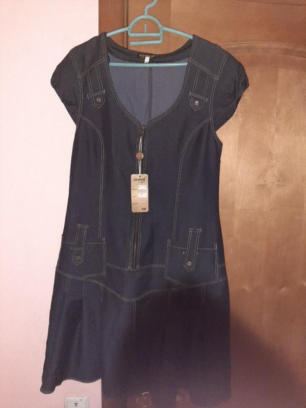 Тканина трохи тягнеться. Маломерит на два розміри. U-подібний виріз, розмір вказано 52, але реально на 50: ОГ-до 100 см, ВІД-85 см, ОБ-104 див. Застібка - блискавка 37 див. Ззаду закрита спинка. Довжина сарафана 85 див.