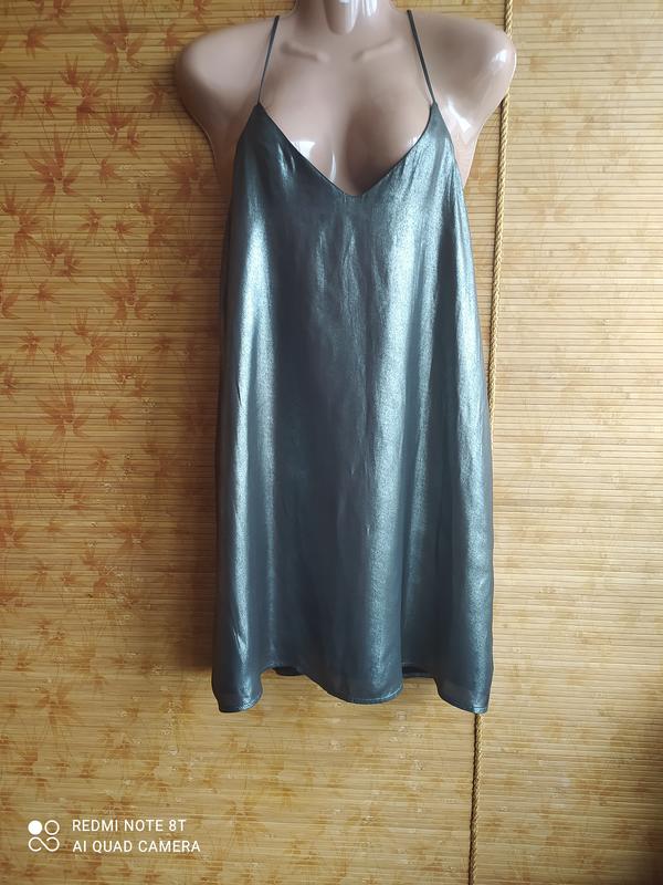 Стильний сарафан вільного крою з сріблястим напиленням, є підкладка. ЗАМІРИ: НОГ - 42см НОБ- 53см Довжина сарафана-89см