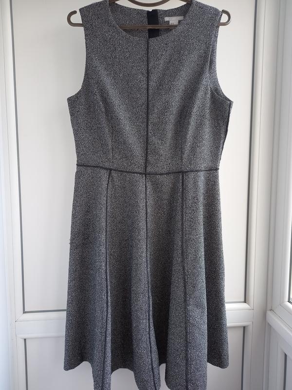 H&M Платье-сарафан серого цвета буклированное.Юбка клёш, сзади молния от талии к вороту.Можно надевать на любую блузку и рубашку.