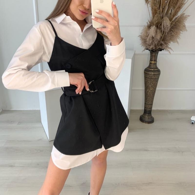 #Сарафан Розміри: 42-44, 46-48 Артикул: 508\455 Матеріал: креп костюмка (сарафан), Коттон ( сукня - сорочка) Колір: білий+чорний, білий+темно сірий Сарафан + сукня-сорочка Пояс в комплекті Фото реал Виміри: 42-44 Плаття ОГ 108 см Про 114 см Довжина рукава 60 см Довжина сукні 89 см 42-44 Сарафан ОГ 92 см Довжина сарафана 73 см Сукню 46-48 ОГ 114 см Про 120 см Довжина рукава 60 см Довжина сукні 90 см 46-48 Сарафан ОГ 96 см Довжина сарафана 75 см