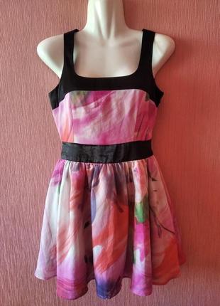 Летний яркий сарафан Нежная цветочная расцветка Талия подчёркнута имитацией пояса С открытой спиной Юбка-клеш с подкладками Сбоку на скрытой змейке Ткань качественная, не парит Размер XS-S Новая модель По всем дополнительным вопросам обращайтесь в любое время