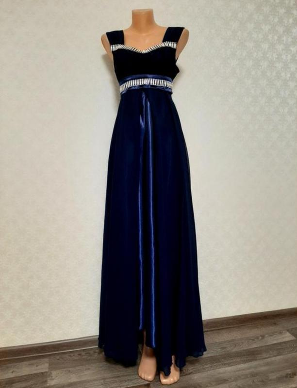 💕Шикарне довге плаття🌸 Матеріал: Низ-дорогий атлас Верх-шифон На грудях і на поясі-дуже гарний декор. Виглядає просто приголомшливо 😍 Розмір 44-48 Колір-т. синій