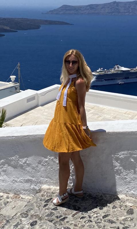 Довжина 88 см, бретелі регулюються, заміри знімалися ще з 16 см в запасі. У мене зріст 163 Стан ідеальний, надевалось 1 раз