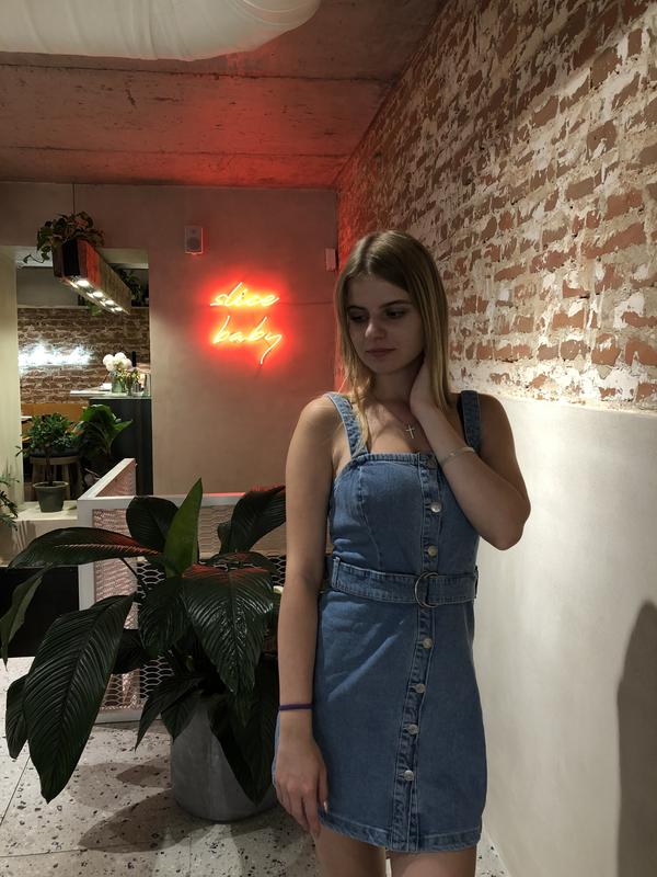 Джинсовий сарафанчик, дуже гарно підкреслює фігуру, одянений 1 раз Якісний джинс Розмір хс-с