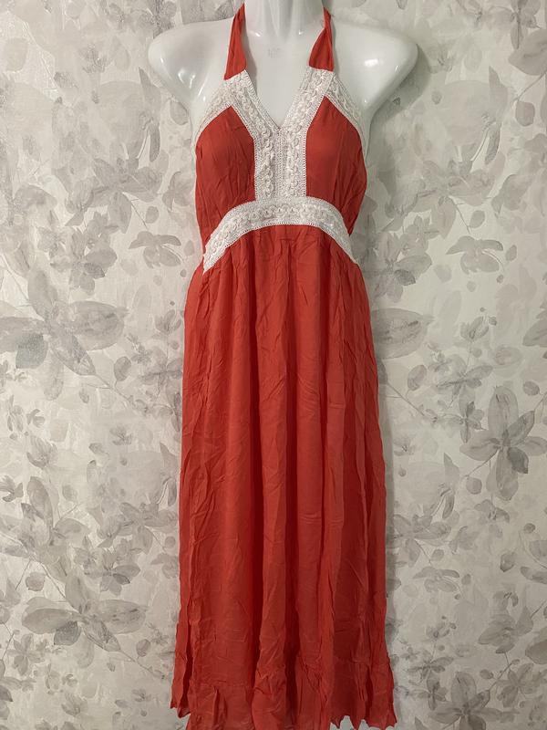 Новий довгий сарафан на шиї з за в'їхав язкою. Як на мене, не дуже акуратне пошиття, тому ціна 50 грн
