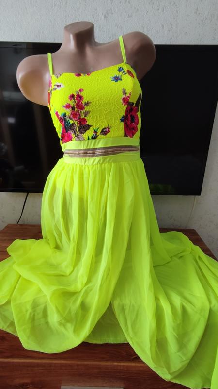 Нереально гарний сарафан неоново-жовтого кольору. Шифон. Є під'юбник. Бретелі регулюються. Новий, але без бірки. Розмір 42 -S. Довжина 111 см без бретелей.