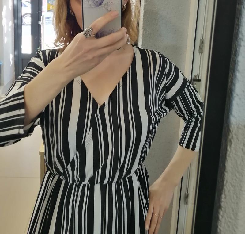Розпродаж із шкафа))) Плаття в чорно-білу смужку,пояс на резинці, дуже зручне, тканина не мнеться, розміром 44-46, довжина 96, бюст 90/98см, стегна вільні.