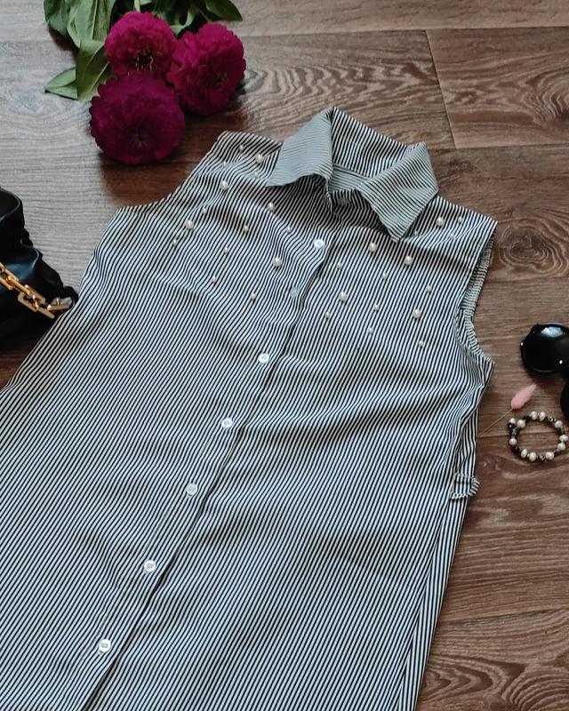 Сарафан в смужку під пояс. Довжина 102, пог 50, піт 49.