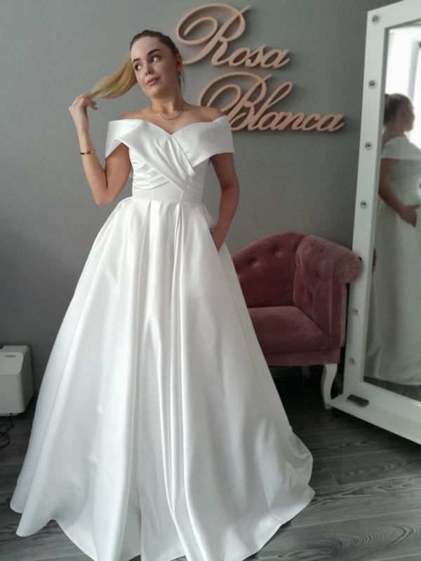 Нова весільна сукня в наявності. Підгонка весільних суконь доступна в нашому ательє. Можливо вносити зміни в моделі весільних суконь- додавати шлейф та розріз, тощо. Шиємо потрібний розмір під замовлення, можливе виконання в інших тканинах. Є послуга прокату. Примірки за попередньо узгодженим часом. Доставка.