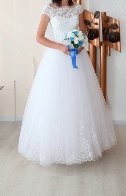 Платье одевалось один раз.Стан отличный,цвет стойкий, дефекты отсутствуют.Корсет регулируется.Размер 42-48