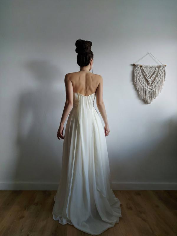 Вишукане плаття на особливий день гарного кольору айворі. Стан ідеальний. Регулюється зав'язками на корсеті. Розмір s,m.