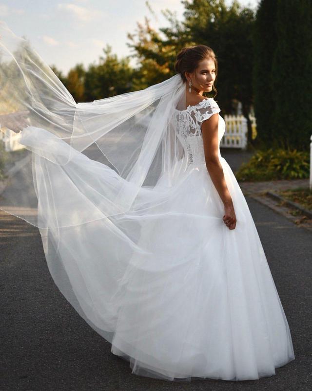 Продам плаття (після хімчистки ) . Розмір s. Ліф з закритими плічками і розшитий блискучими візерунками з бісеру , плавно переходять на пишну спідницю. Весільний фатиновый під'юбник на 3 кільця в Подарунок