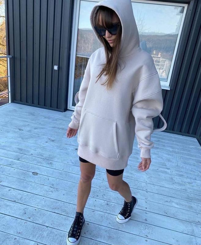 Удлинённая туника (худи) на флисе с капюшоном «Милитари» 105 pu свободного кроя Размер - 42-46 oversize Цвет - малина , зелено-фисташковый, беж Ткань - трехнитка флис Широкий свободный длинный худи - платье oversize оригинального кроя с глубоким капюшоном , накладным карманом кенгуру , с масивными широкими рукавами и стильными шлейками по ним необходимая вещь в вашем гардеробе. Отлично сочетается с любым низом как джинсами и лосинами так и с юбкой. #худі 💸Ціна 620 грн