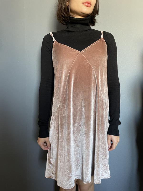 Оксамитова сукня-сарафан Пудровий мерехтливий колір Річ універсальна: під водолазку, під сорочку, літом під футболку. І просто так так на якусь подію
