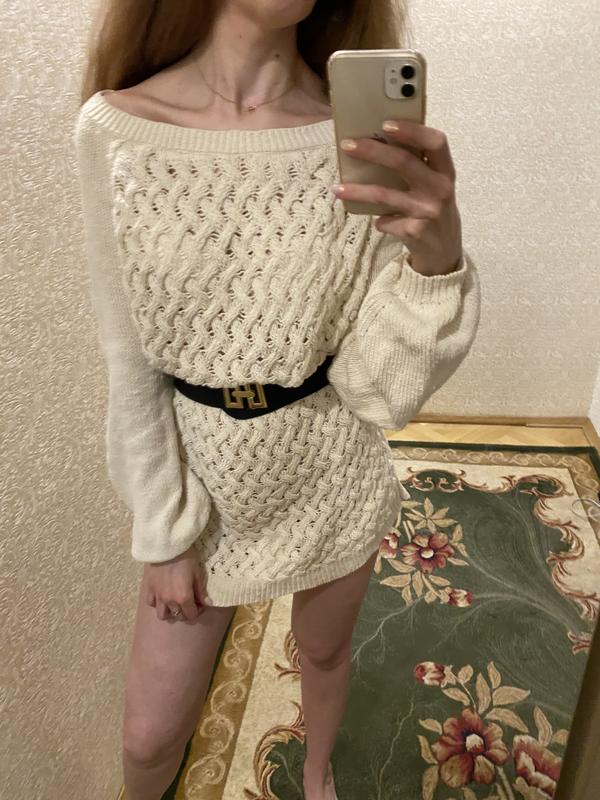 Платье туника кремового цвета. Красивая вязка. Можно носить с любым ремнем или поясом. Размер - L