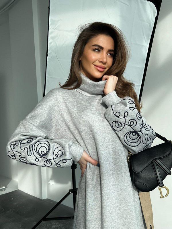 Туніка Модель 7455 tiv Размір 42-44(S-M), 46-48 (L-XL) Ціна 650 грн Тканина : двустороння ангора+ вишивка Кольори: сірий, беж, чорний Довжина: 89 см Сукня вільного крою декорована вишивкою шнуром на рукавах. Якісний пошив Тканина дуже м'яка приємна до тіла.