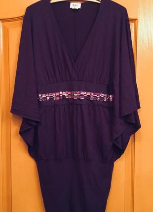 Трикотажна фioлетова тунiка,крою,,летюча миша’’,декорована камiнцями Пог-40,довж рук вiд горловини-50,довжина по спинцi-85cм