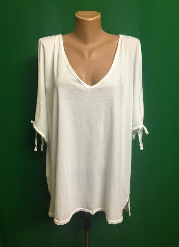 Туніка вільного крою з прорізом рукава Next - 100% Тонка футболкова бавовна Вказано євро розмір 22 Реглан Пройм 32 см (біцепс 24 см) Пог 72 см В таліі 69 см В стегнах 70 см (побіч розрізи по 8 см) Довжина рукава від горловини 37 см Довжина спинки 63 см Відмінний стан Торгу немає