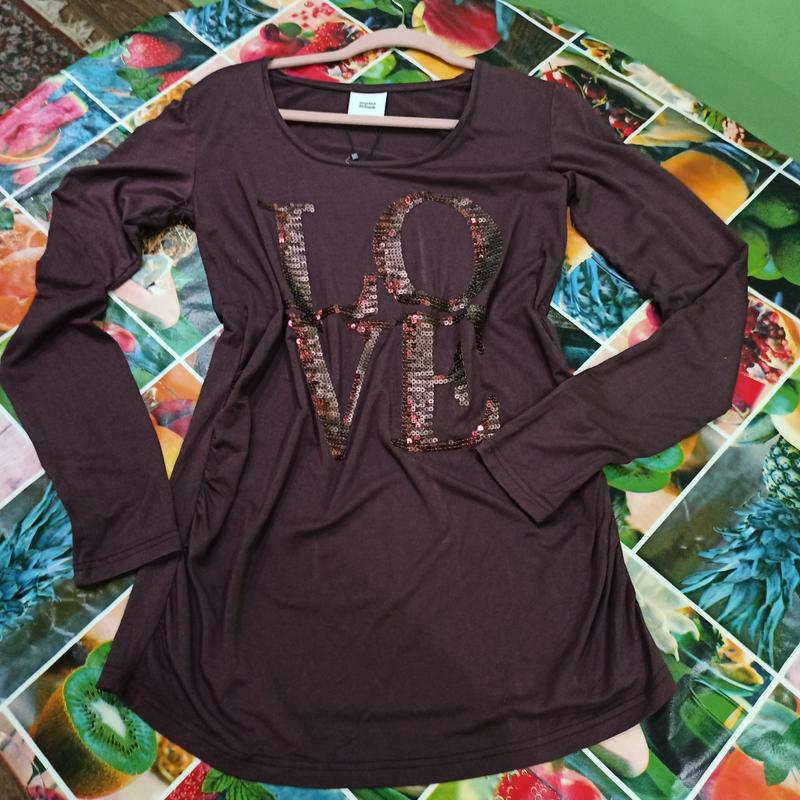 Бордова кофтинка-плаття- туніка від Mama Licious. Розмір М. Спереду паєтки Love. ПОГ 46 см, ПОТ 45см, ПОС 45см, довжина 75 см