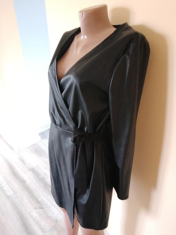 Чорна туніка відомого бренду.Еаошкіра .Розмір 10 Довжина 85,пог 48-50(на запах),талія 41,бедра 50.,рукав 60,,плечі 37.