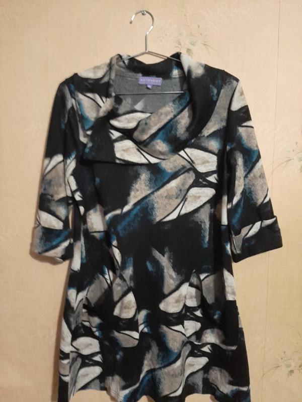 Туніка з карманами, указаний 12 розмір: ПОГ - 47, ПОТ - 44, ПОБ - -49, довжина - 79, рукав - 38, можливо - під гольфик тоненький.