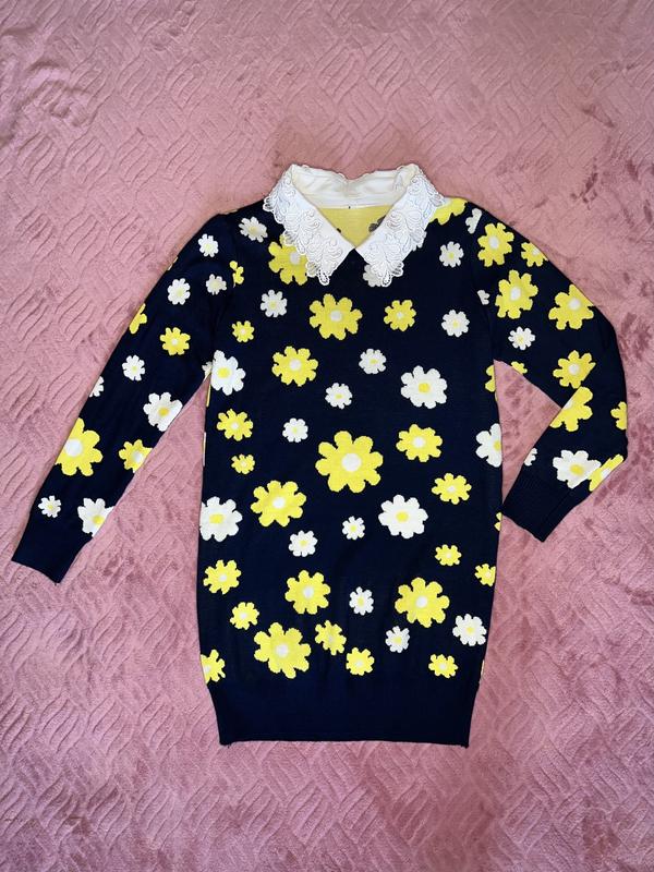 Тепла туніка з мереживним комірцем, який знімається size: XS / S Заміри: півобхват в грудях - 45 см, довжина - 76 см, довжина рукава від краю плеча - 55,5 см.
