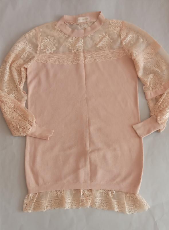 Гарна туніка з вставками мережива в дуже гарному стані на розмір42- 44. Загальна довжина-71см. Плечі-30 . НОГ-41. Рукав-56. Секонд хенд. Має запах обробки.
