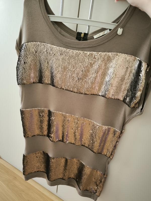 туніка жіноча,з пам'ятками, кольору мокко,розмір s-m,виробник Італія,в дуже гарному стані.