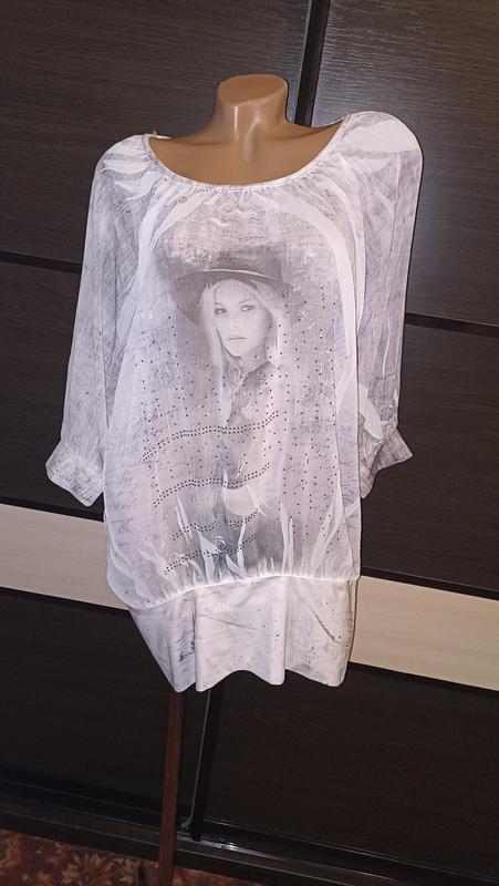 Обладнана туніка. Трохи світиться. Можна носити з напуском, а можна як на фото. Трохи тягнеться. Заміри в спокійному стані. Потягнеться на 4 см ОГ 128 см ОТ 124 см ОС 90-110 см Рукавчик від горловини 50 см Довжина 80 см