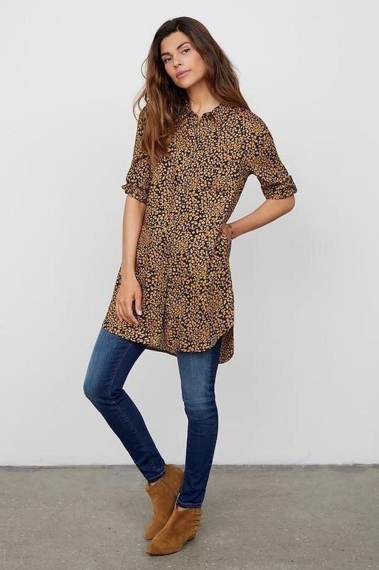 Натуральне плаття-сорочка від BON'A PARTE з коміром.Спереду планка з ґудзиками. Рукави 3/4 довжини з хлястиками для підкачування. Нагрудну кишеню зліва та врізні глибокі з боків. Ззаду трохи довше, ніж спереду. Закруглений ззаду. Приємна тканина. Склад 100% віскоза Колір: темно-синій/ темно-каррі, як на моделі. Розмір EUR/M-L НОГ-53-55 см Рукав від горловини — 57 см Довжина перед/зад-80/92 см Виготовлено в Індії.