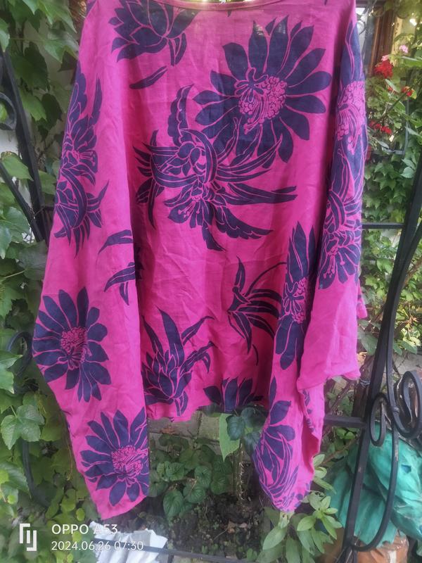 Фуксия приготовлена синими цветами, объемная свободная дышащая,асиметрия, структура льна близко к домотканому. Д 60/80 по бокам