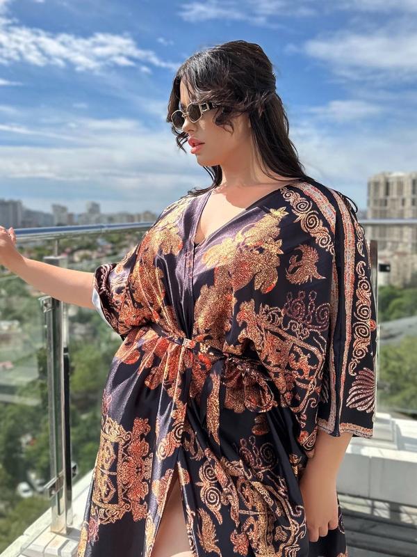 👆🏻👆🏻👆🏻 SW649 ♥️Роскошная новинка для красавиц PLUS SIZE! ✔️Универсальная туника! Подходит как на пляж, так и как отдельный элемент одежды ✔️Отличное качество, ткань атласный шелк😍 ✔️Размер универсальный, подходит на размеры М-2XL! ✔️ объем груди и бедер 98-122 см ✔️Быстрая доставка 1-2 дня! 💰 цена 1200
