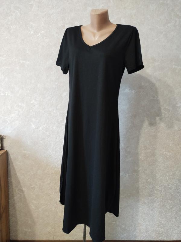 Бренд: Shein; Колір: чорний; Склад: поліестер, котон; Розмір: S; Спинка: 38 см; ПОГ: 47 см; Довжина рукава: 18 см; Довжина: 109 см. Номер: 22985.