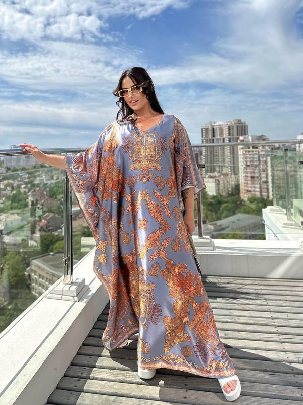 SW648 Розкішна новинка для красунь PLUS SIZE Ідеальна сукня-туніка для відпочинку Відмінна якість, тканина атласний шовк Розмір універсальний за рахунок крою, підходить на розміри XL-7XL Замір виробу: об'єм грудей та стегон 200 см! Довжина 136 см Швидка доставка 1-2 дні