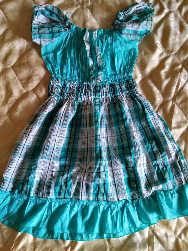Довжина 62 см. ПОГ тягнеться до 50 см. ПОБ до 60 см. Рукавчики фонарики. У плечах тп рукавчиках теж тягнеться, в бедрах ні. Легенька, невагома. Орієнтуйтесь на заміри. Пересилаю безпечною оплатою. Колір морської хвилі.