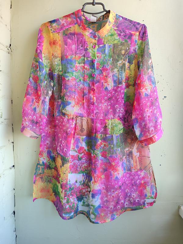 Оригінальна літня яскрава туніка від бренду Best connection Розмір - L/48, також може підійти і на XL/50. Орієнтуйтеся, будь ласка, на виміри👇 НО гр - 54 НО тл - 51 НО ст - 60 Довж - 78 Довж рк - 41 Внизу по бокам розрізи. Тканина шовковиста, невагома, на кшталт шифону, Стан: ідеальний/новий 👍 Замовлення відправляю Новою та Укрпоштою: - при оплаті на карту; - безпечною оплатою від Шафи. При замовлені від 1 тис. грн. - подарунок🎁 або безкоштовна доставка* 💰. Ще багато красивих, цікавих речей в наявності ви знайдете на моїй сторінці - підписуйтесь, щоб не пропустити новинки та розпродажі🤗. Вдалих покупок 🌹 *Безкоштовна доставка діє: - до 01.09.2024(вкл). - на доставку до відділення пошти або поштомат. - при оплаті на карту.