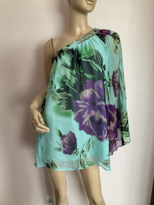 Дуже симпатична та якісна. Рукав пліссе.на підкладці. Без дефектів. Заміри в грудях 52 см в бедрах 57 см довжина 77 см рукав реглан від горловини 71 см по окружності руки 26 см 5:9:24
