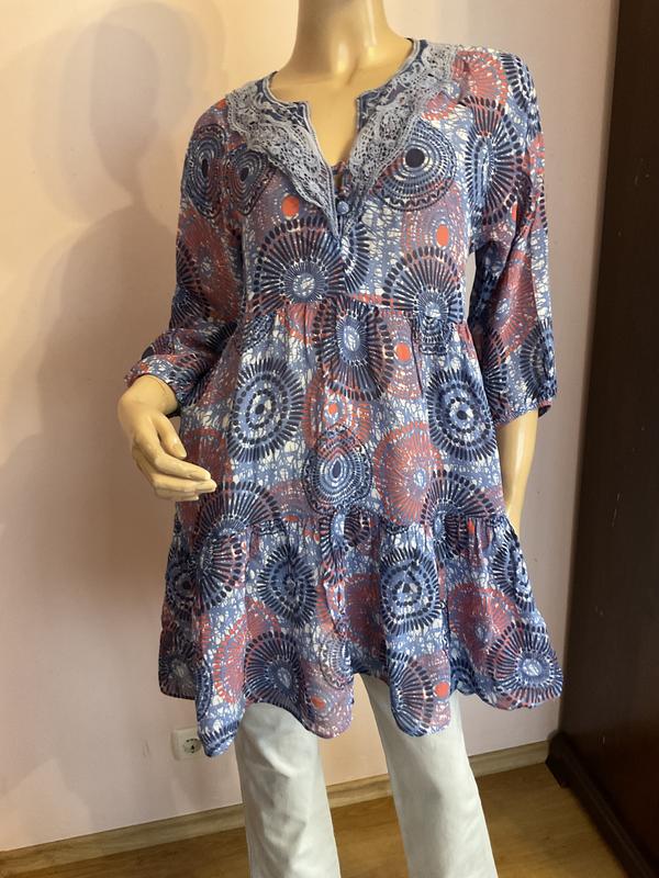 Тканина чуть просвіщаеться. Завязуеться. Без підкладки, без дефектів. Заміри в грудях 54см в талії 52см в бедрах 80см довжина 85см рукав реглан від горловини 55см по окружності руки 25см 10:12:24