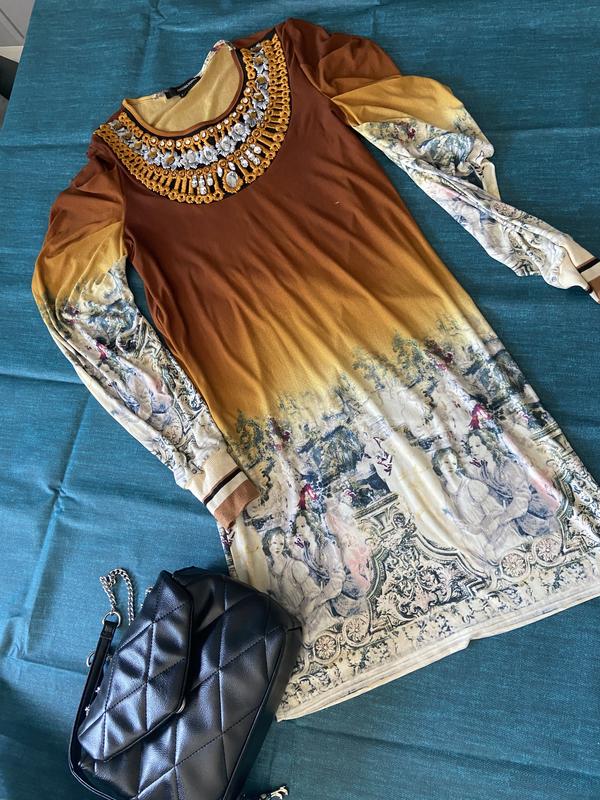 Дуже гарна приталена туніка від Cinema Donna . Але є нюанс - невеликий поріз . На фото показала . Тому така ціна . Можливо щось накинути , якись жилет чи хустку .А так дуже яскрава .Розміри : ПОГ- 42 см , ПОТ - 40 см, ПОБ - 45 см Ширина плечей - 38 см , Довжина виробу по спинці - 64 см, довжина рукава - 61
